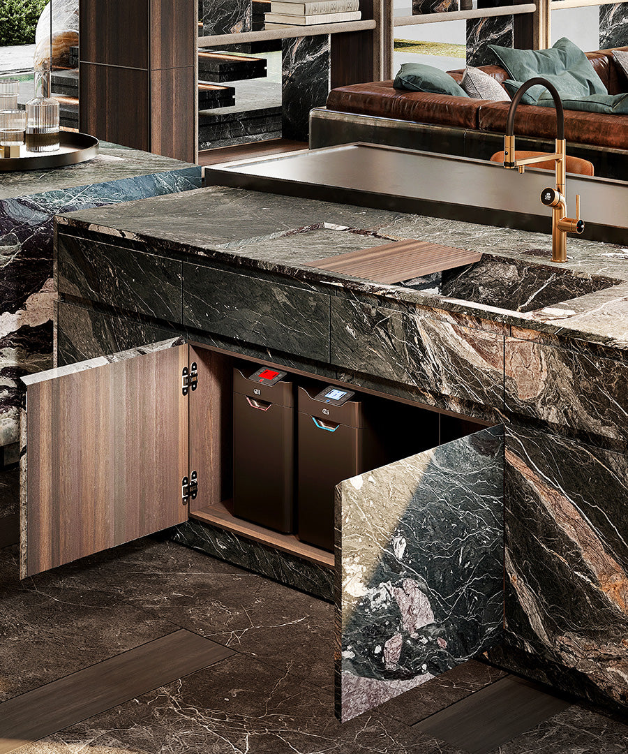 Il selettore digitale offre un controllo intuitivo delle funzioni e della tipologia d’acqua erogabile. Icone animate e un display smart rendono ogni interazione semplice, chiara e personalizzabile.